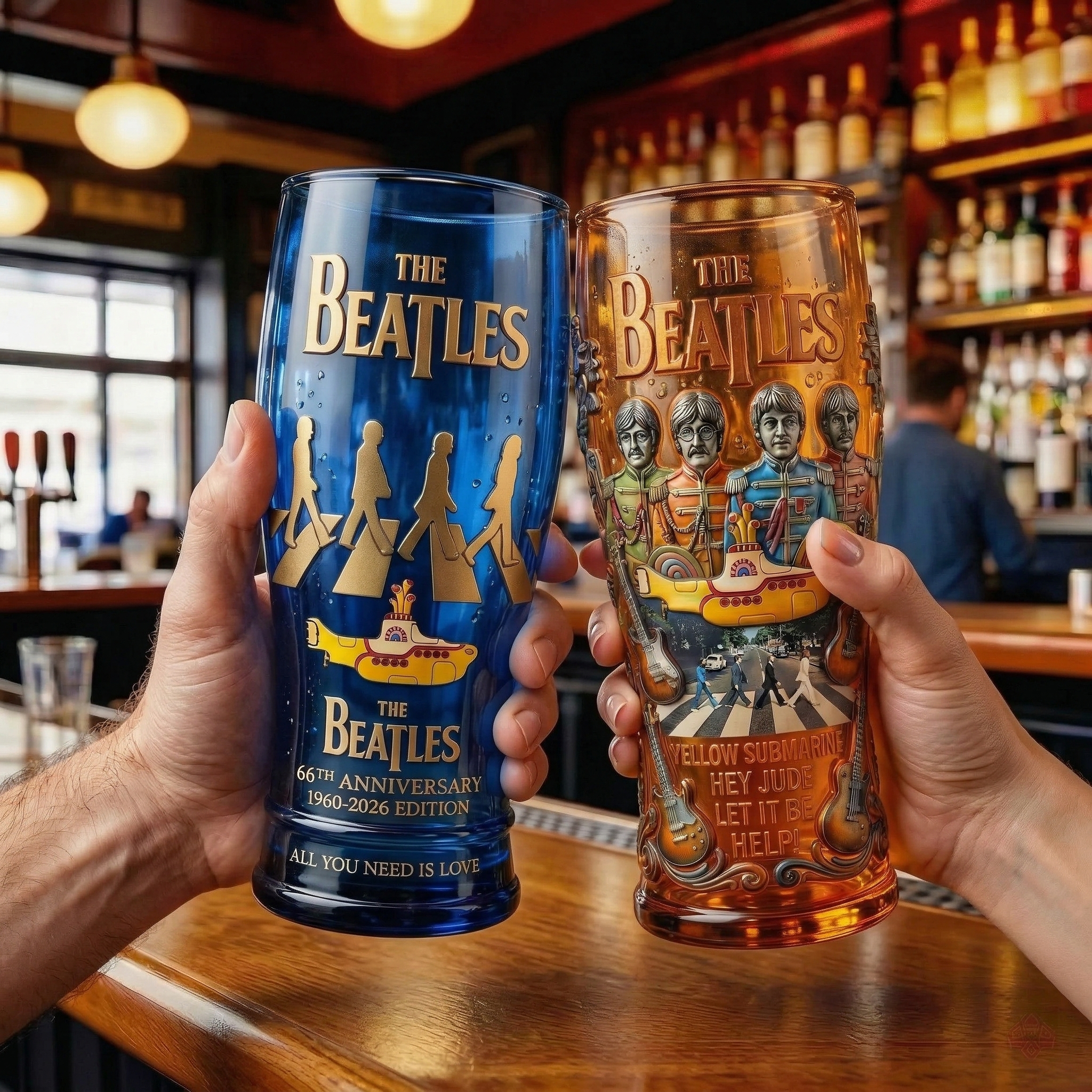 For over 60 years, the music of The Beatles has echoed across radios, concert halls, and generations of fans around the world. From the streets of Liverpool to global fame, their songs shaped the golden age of music. This Collector Glass was created to celebrate the creativity, spirit, and unforgettable legacy of one of the most influential bands in history.
